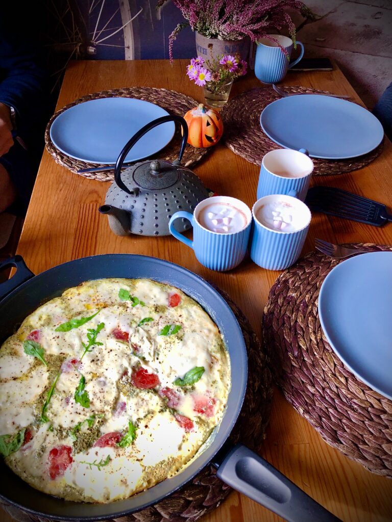 Uwielbiam robić omlet, bo zawsze się udaje i można przy okazji „posprzątać” lodówkę ze wszystkich resztek :). Omlet przyjmie z wdzięcznością wszystko, co mu podarujecie, każdy skrawek niechcianego serka, każde kawalątko kiełbaski.