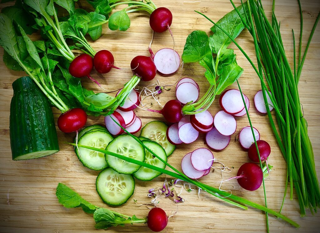 - zielenina: sałata, rukola, roszponka, młody szpinak